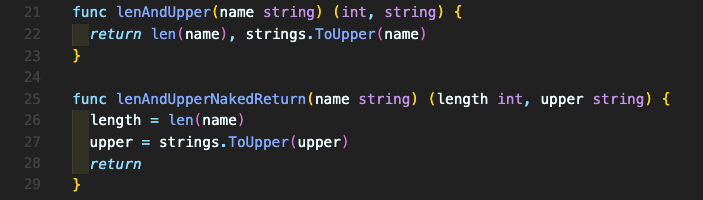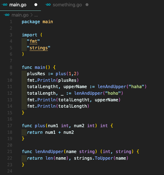 그럴때는 위의 lenAndUpper함수처럼 각각의 리턴타입을 지정해준다.