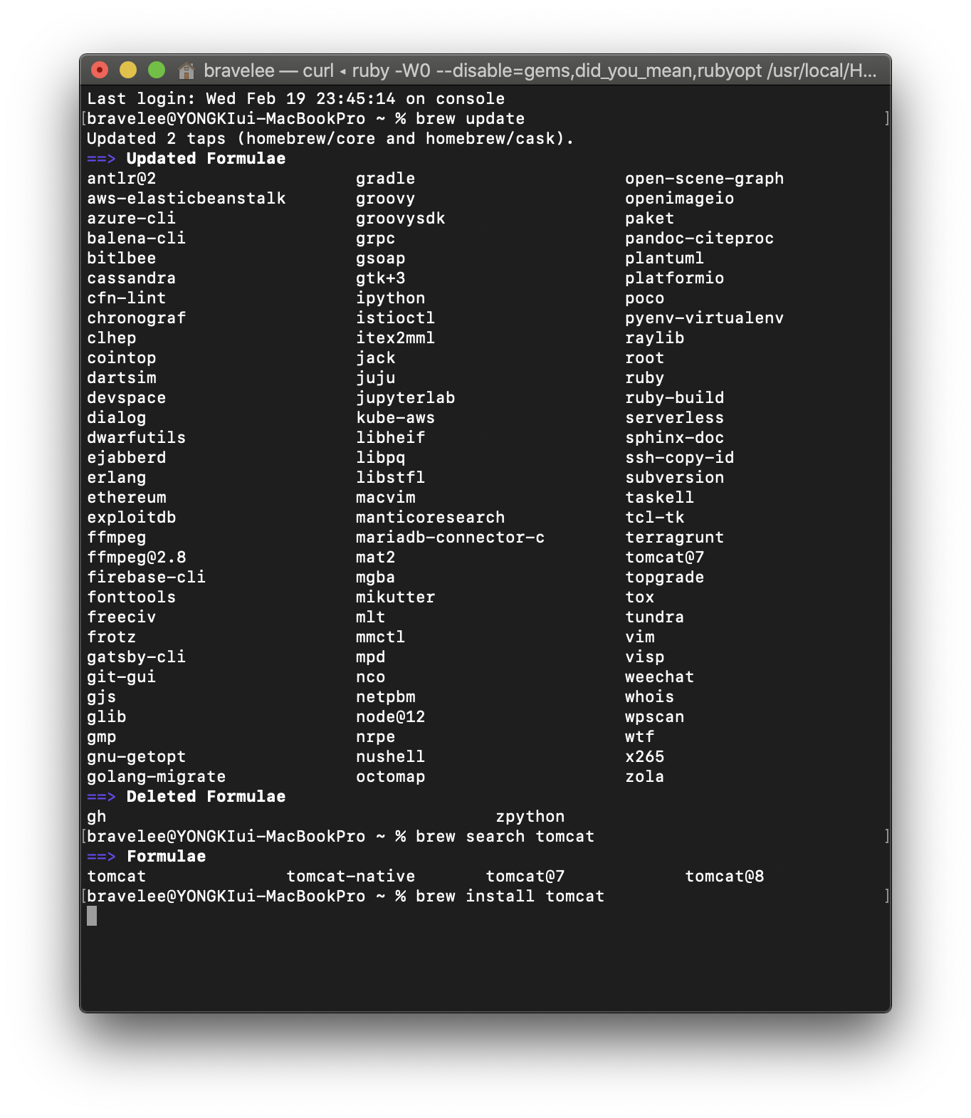■Homebrew를 이용한 tomcat을 설치